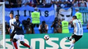 Em sua quarta Copa do Mundo, o dono de cinco Bolas de Ouro se despede mais uma vez sem fazer um gol numa fase de mata-mata no Mundial (ele tem agora 19 jogos e seis gols em Mundiais, todos em fase de grupos). Messi participou do lance do segundo gol, o da virada argentina, no início da etapa final – ele chuta, a bola desvia em Mercado e entra. No geral, porém, o camisa 10 teve pouco espaço para jogar, marcado de perto pelo incansável Kanté e sem um centroavante por 65 minutos (Aguero entrou aos 20 do segundo tempo).