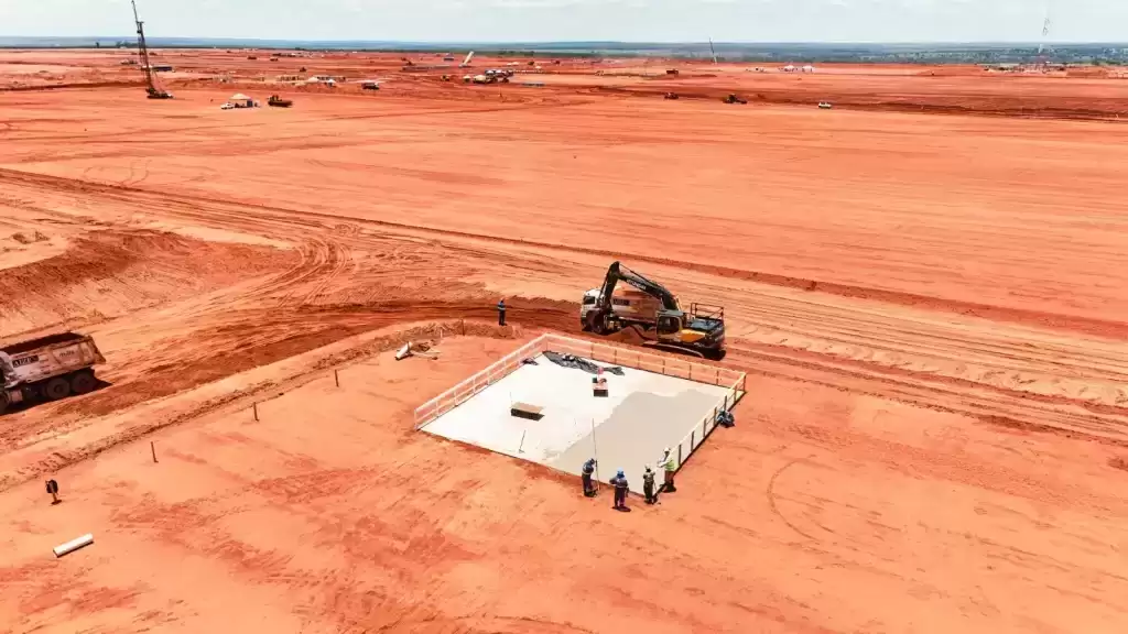 No local, 1.800 homens trabalham de forma incessante na terraplanagem da planta industrial, que tem investimentos de mais de US$ 4,6 bilhões e vai produzir 3,5 milhões de toneladas. O processo consiste no preparo da área onde será construída a fábrica, a partir do primeiro trimestre de 2025. A previsão para o início de operação da fábrica é para o segundo semestre de 2027.
