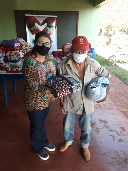 A Campanha do Agasalho 2020 continua com a entrega de cobertores as famílias cadastradas junto ao município. Mesmo sendo feito de forma diferente como realizada nos anos anteriores em virtude do Covid 19, todas as famílias cadastradas serão assistidas. São cerca de 4.500 cobertores que serão entregues. Nesta segunda feira (15), a Primeira Dama Leila Gonçalves Azambuja acompanhada do Chefe de Gabinete Paulo Suslek, Secretária de Educação Cleoerdes Barbosa, Secretária de Assistência Social Ilma Aquino, estiveram na Aldeia Sucuruiy, onde entregaram os cobertores as famílias cadastradas.
