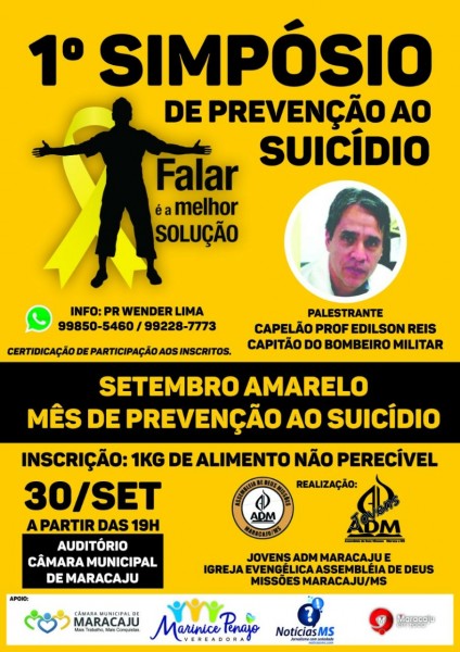 Setembro foi o mês de prevenção ao suicídio e para finalizar acontece amanhã em Maracaju o primeiro simpósio de prevenção ao suicídio.