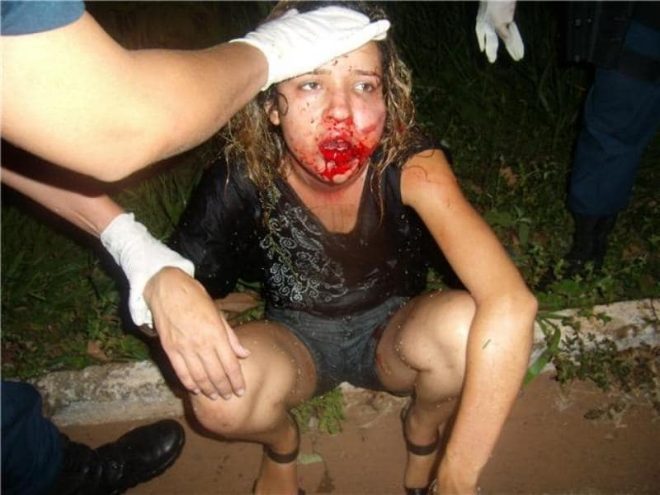 “No dia 11 de novembro de 2009, após ter terminado ele, minha filha foi perseguida e interceptada em um local escuro, jogada no meio de um brejo e cruelmente massacrada com socos, mordidas e joelhadas por cerca de 50 minutos, entre desmaios e lutando pela vida de forma desesperada, minha filha, que na época tinha 20 anos se debatia tentando escapar do agressor covarde que não aceitava o fim do relacionamento. Durante a sessão de espancamento, o Marcos, conhecido pelo apelido de Huck, tentou estrangular minha filha, quebrou seus dentes, afundava sua cabeça no brejo, dava mordidas e beijava a boca dela ensanguentada dizendo que se ela não fosse dele não seria de mais ninguém e que ele iria matá-la para que pudessem ficar juntos em outro local, dando a entender que a mataria e em seguida cometeria suicídio”, publicou a mãe.