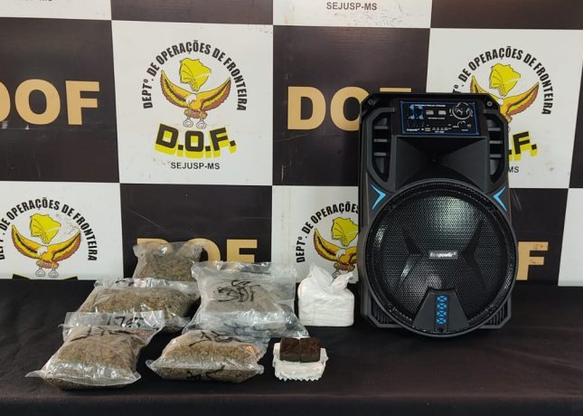Os militares do DOF realizavam um patrulhamento pela rodovia MS-379, área rural do município de Laguna Carapã, quando deram a ordem de parada ao condutor e passageiro de uma NISSAN TIIDA, com placas paraguaias. Durante a vistoria veicular localizou-se, dentro de uma caixa de som, 310 gramas de cocaína; 110 gramas de haxixe marroquino; e, 1,125 quilo de skunk.