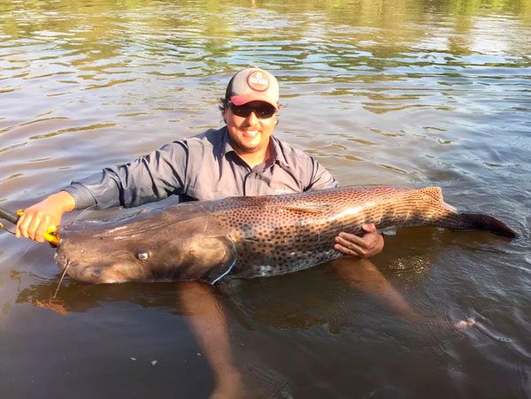 Peixe com 1,62 metro foi solto no rio Dourados, em Fátima do Sul. — Foto: Rodrigo Jorge/Arquivo pessoal