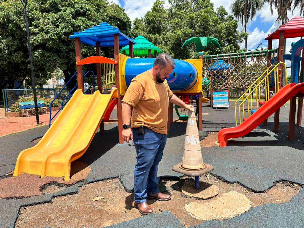 Vereador Robert Ziemann solicita recuperação do playground da Praça Central de Maracaju