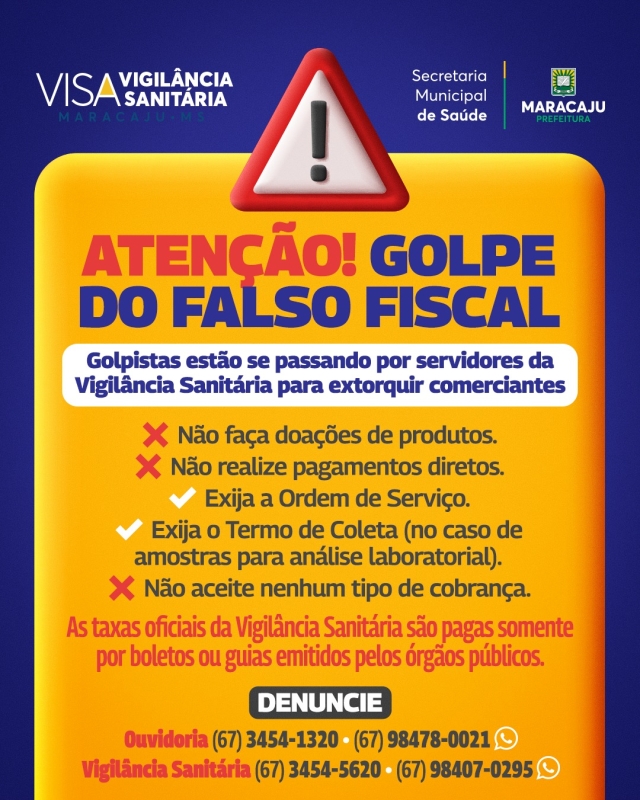 Prefeitura de Maracaju alerta para golpe do falso fiscal da Vigilância Sanitária.