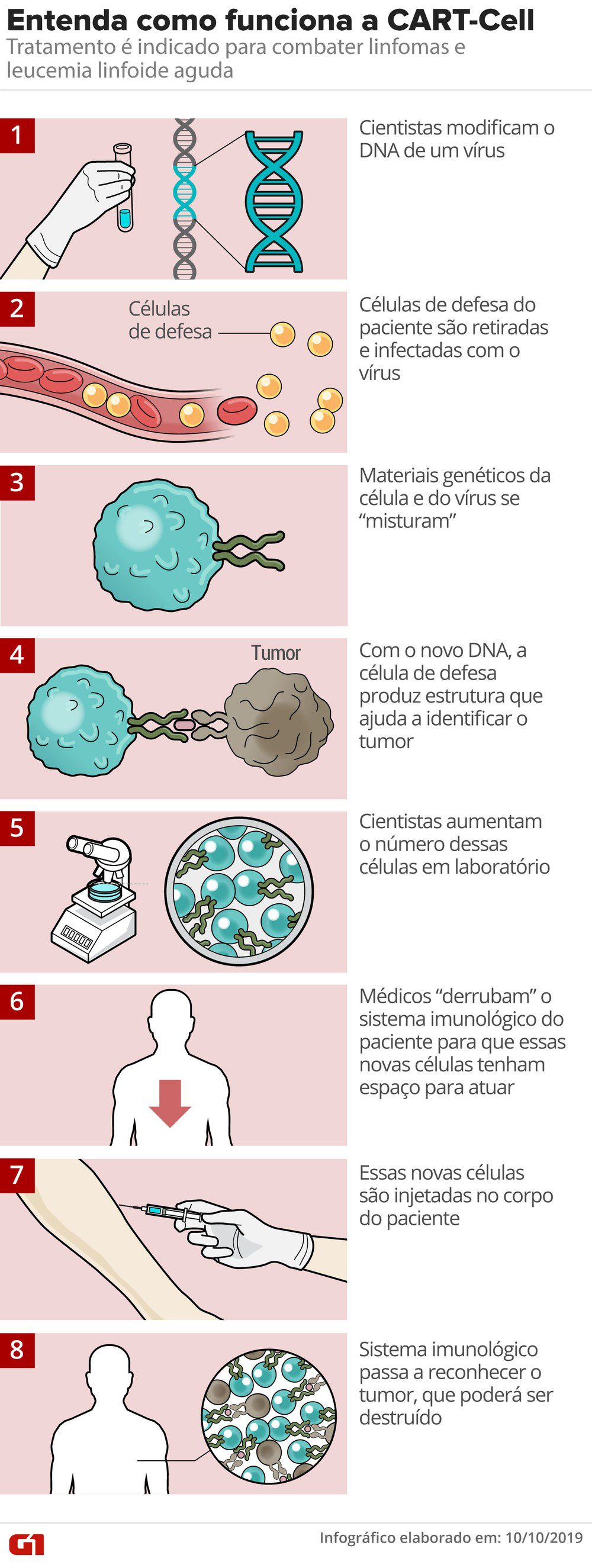 A CART-Cell é uma forma de terapia genética já utilizada nos Estados Unidos, Europa, China e Japão. Esse método consiste na manipulação de células do sistema imunológico para que elas possam combater as células causadoras do câncer.