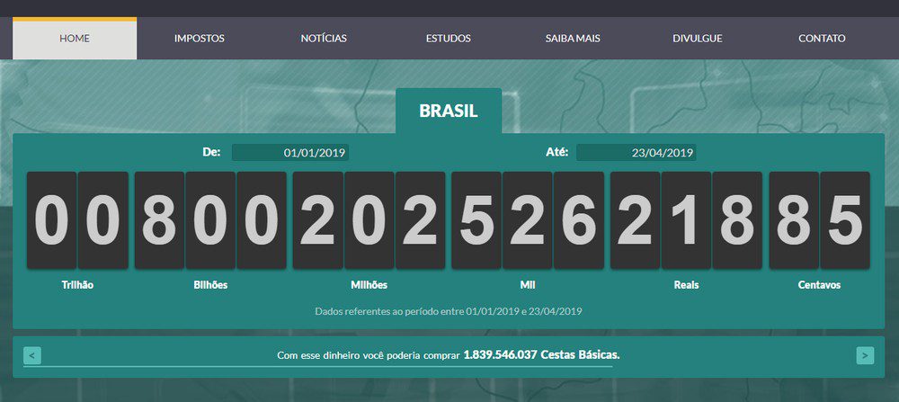 Em 2018, o Impostômetro superou a marca de R$ 2,3 trilhões em impostos pagos pelos brasileiros no ano.