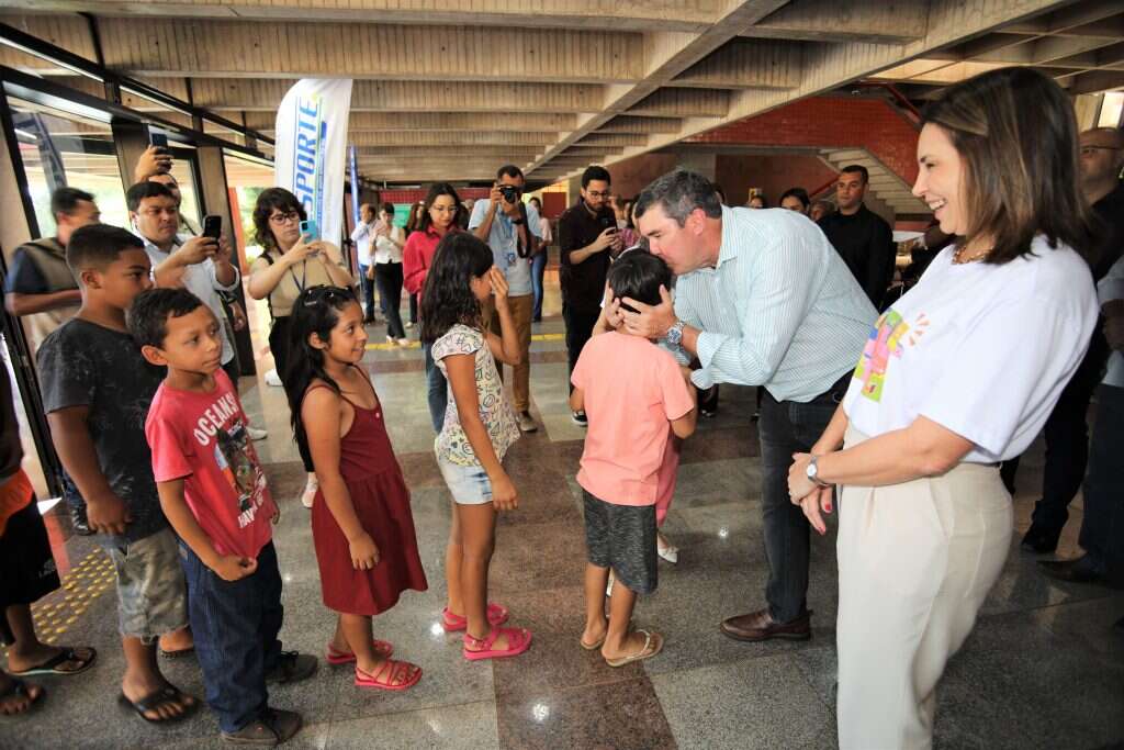 O governador Eduardo Riedel e a primeira-dama e madrinha da campanha, Mônica Riedel, participaram do encerramento da ação na tarde desta segunda-feira (11), no Centro de Convenções Rubens Gil de Camillo, com a participação de 250 crianças convidadas, que participam de cinco instituições – Associação Kodomokai de Karatê, Clube de Mães da Vila Fernanda, Instituto Jardim de Deus e Projeto Atos de Um Vencedor, Associação de Moradores das Vilas Adelina Maciel e Colonial e Associação Parque do Sol.