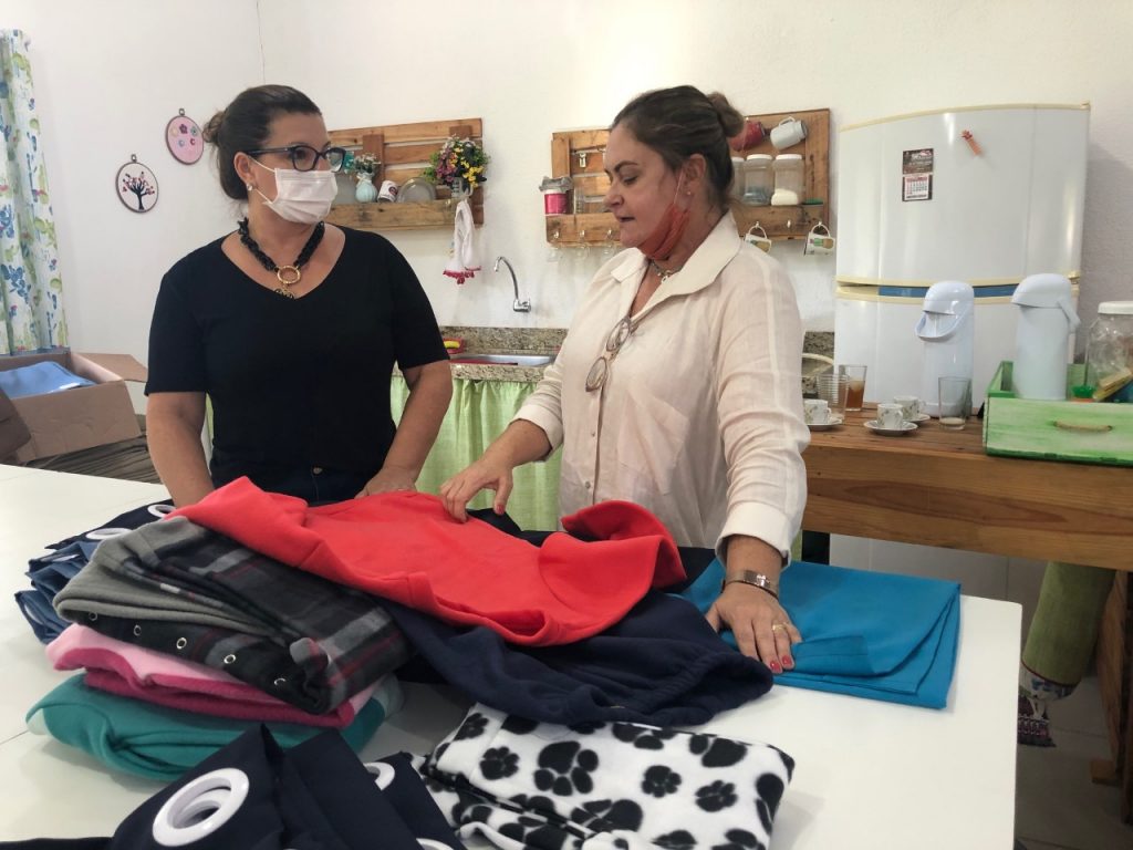 Foto Hosana de Lourdes Primeira dama Rosemeire Calderan com a primeira dama Vânia Peluffo conhecendo as ações do FAC em Ponta Porã.