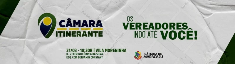 A primeira Câmara Itinerante do ano de 2.025 acontecerá neste dia 31 de março, na Vila Moreninha, na Rua Zeferino Corrêa da Silva esq. Com a Benjamin Constant, as 18:30horas.