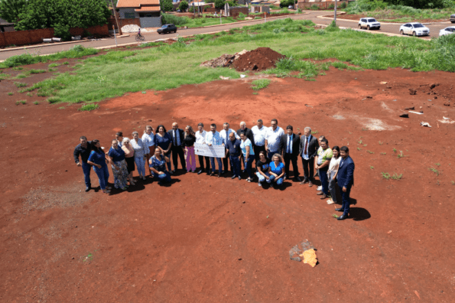 Logo após a sessão as autoridades foram até o local onde será construída a creche que irá atender centenas de famílias dos bairros Olidia Rocha, Fortaleza, Adrien, Ilha Bella e Coqueiral.