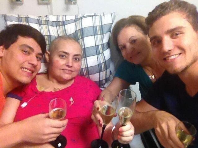 Nessa foto, a gente comemorava o início dos meus estudos em teatro e televisão em São Paulo.