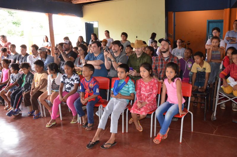 Durante a visita os chefs receberam dos alunos carinho e uma apresentação musical da oficina de violão e assistiram a uma peça de teatro que também é uma das oficinas que fazem parte do projeto.
