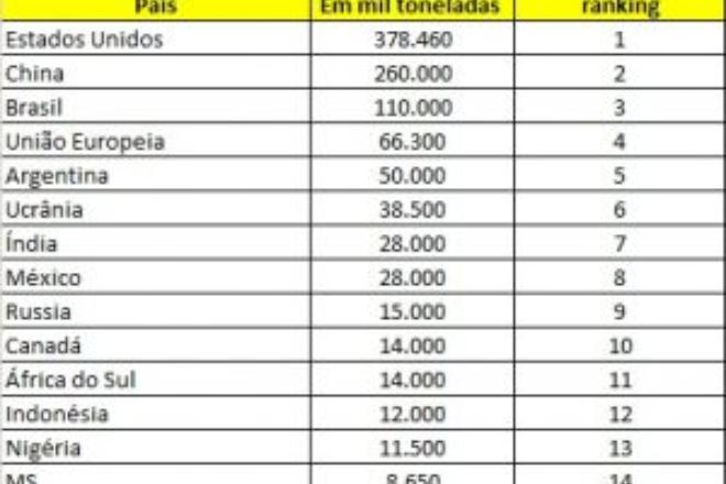 Comparando os números de Mato Grosso do Sul com os de outros países, levantados pelo Departamento de Agricultura dos Estados Unidos (USDA), o Estado seria o 14º maior produtor do grão do mundo.
