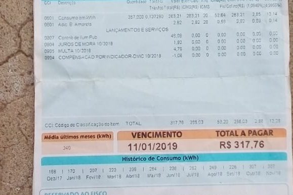 Nas contas de energia da gari, é possível notar não apenas o aumento no preço. Na tabela com o histórico do consumo, os valores mensais também aumentaram. Enquanto o consumo de energia em dezembro de 2017 era de 188 kWh, em dezembro de 2018 foi de 357 kWh. A consumidora ressalta que não comprou nenhum eletrodoméstico novo que possa justificar o aumento no gasto de energia. “Não tenho ar condicionado, só uso o ventilador. Não comprei nada, muito pelo contrário, tirei coisas. Desinstalei o fogão da tomada e até tirei o chuveiro elétrico”.