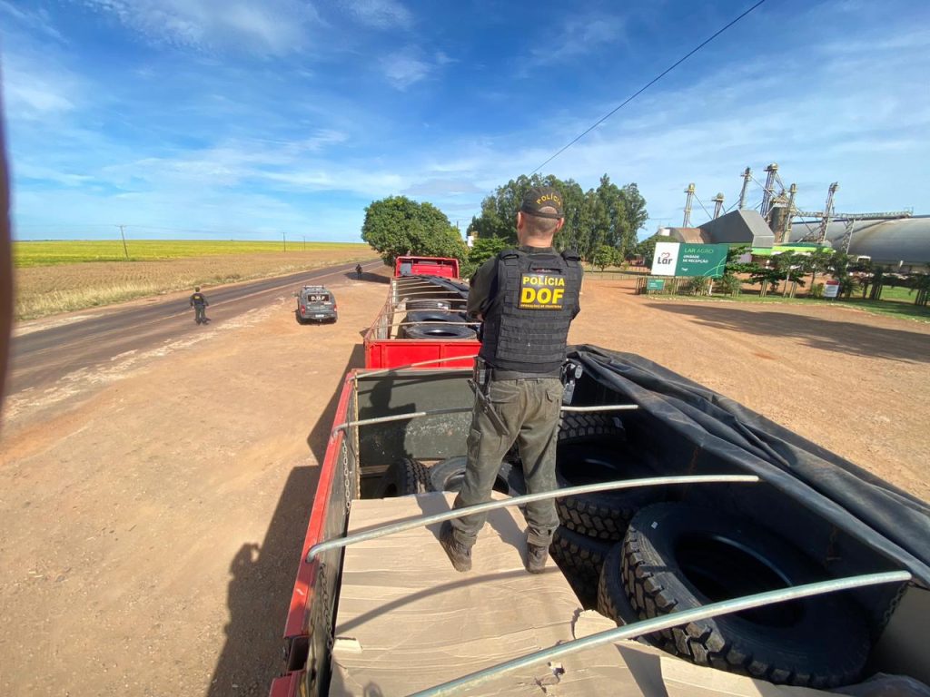 Condutor de carreta é preso pelo DOF com drogas e pneus ilegais no município de Ponta Porã