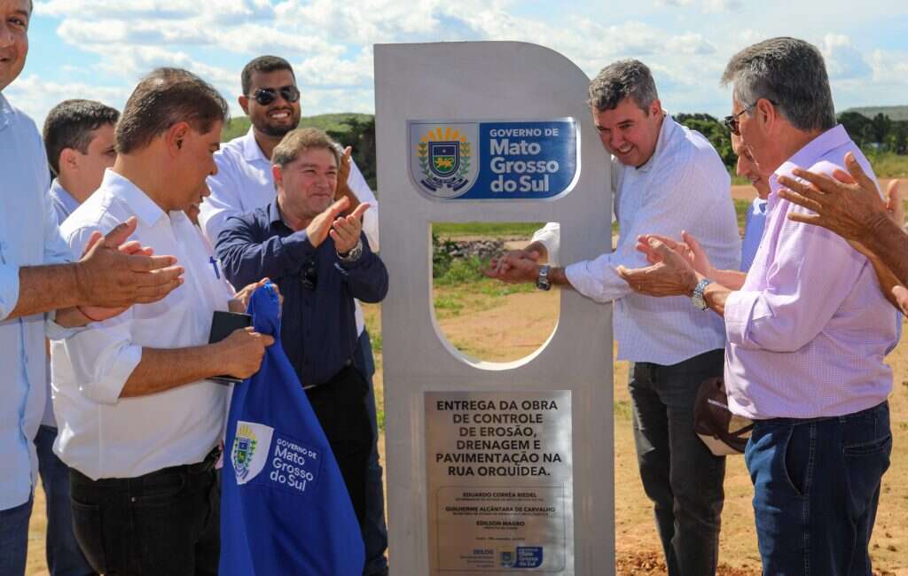 Na primeira parada da agenda em Coxim, o governador Eduardo Riedel entregou as obras de pavimentação e controle de erosão na Rua Orquídea, no complexo conhecido como “Buracão” — uma das intervenções mais aguardadas pelos moradores.