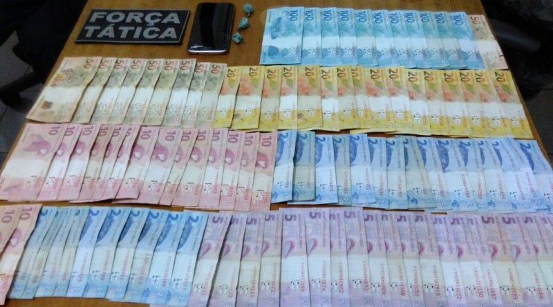 Com autorização, a equipe procedeu com buscas no interior do bar com intuito de localizar mais drogas, mas nenhuma outra substância ilícita foi encontrada, porém ao verificarem uma dispensa que também é utilizada como cozinha foi achada sob um auto falante automotivo, a quantia de R$ 2.000,00 em notas diversas, que o proprietário não soube informar a procedência.