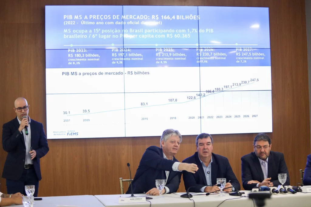 As projeções do Sistema Fiems indicam um crescimento nominal de 8,5%, tanto para o PIB estadual, quanto para o PIB Industrial de MS em 2025 – R$ 213,5 bilhões e R$ 43,1 bilhões, respectivamente. Mato Grosso do Sul participa com 1,7% do PIB nacional, ocupando a 15ª posição entre os estados brasileiros e 6º lugar no PIB per capita.