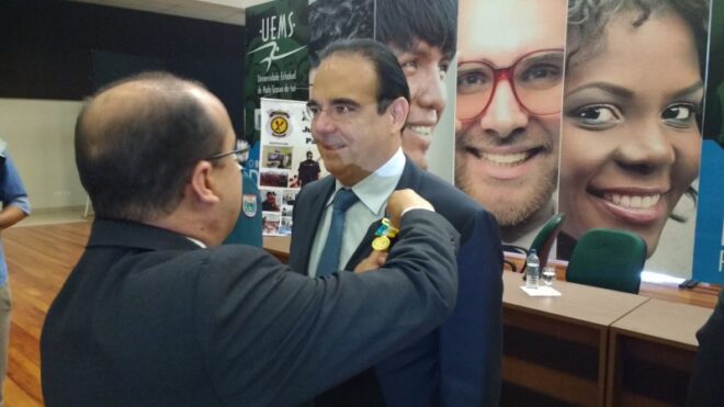 O Deputado Estadual Felipe Orro recebeu hoje a Medalha Patrono Penitenciário Senador Ramez Tebet. O evento foi idealizado pela Agência Estadual de Administração do Sistema Penitenciário de Mato Grosso do Sul (Agepen) e pela Secretaria de Estado de Justiça e Segurança Pública (Sejusp).