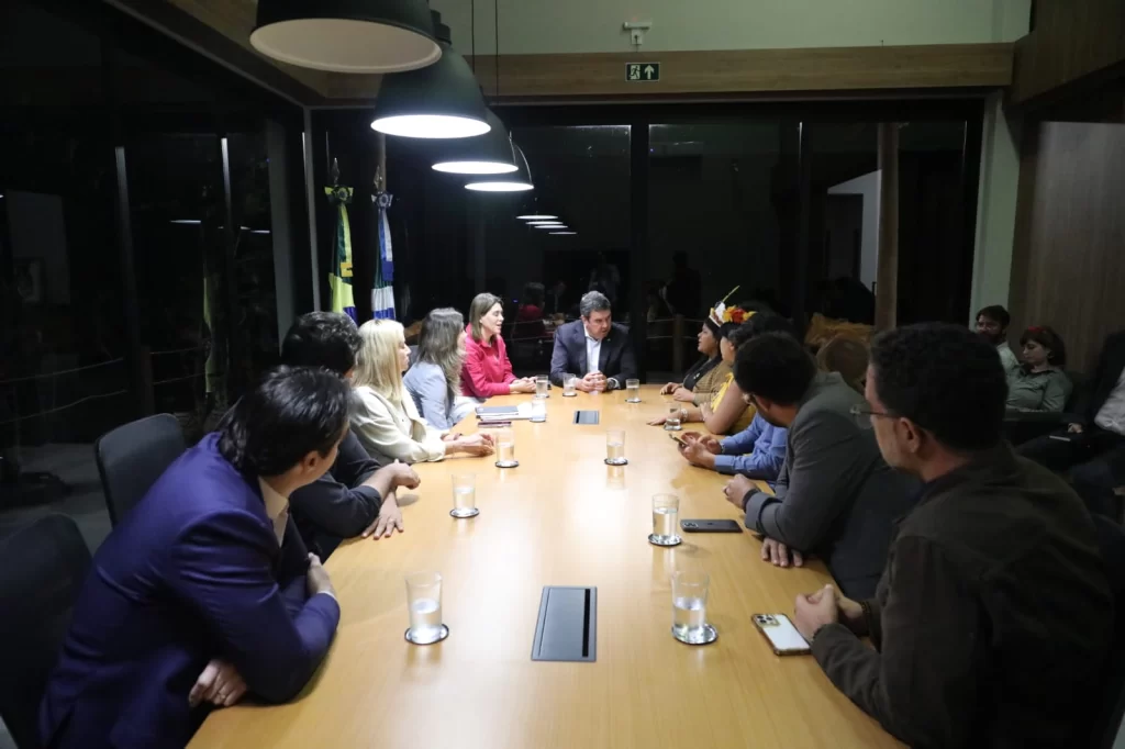 O governador Eduardo Riedel se reuniu na noite desta terça-feira (6) com uma comitiva do governo Federal, liderada pela ministra dos Povos Indígenas, Sônia Guajajara, e pela presidente da Funai (Fundação Nacional dos Povos Indígenas), Joenia Wapichana, para discutir o avanço e parceria para ampliar as políticas públicas às comunidades indígenas em Mato Grosso do Sul, em setores como saúde e educação. Na pauta, também a defesa por soluções para pacificar os conflitos no campo.