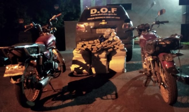Ao todo estavam 136,5 quilos de maconha e 2,5 quilos de Skank em fardos nas motocicletas, que seguiam para entrega em Campo Grande (MS).