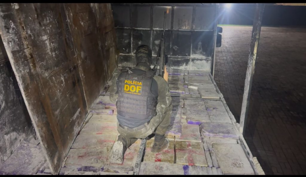 Uma grande apreensão foi realizada por policiais do Departamento de Operações de Fronteira (DOF) nesta segunda-feira (21), em Iguatemi (MS). Durante um bloqueio na MS-295, na saída para Eldorado, os agentes interceptaram uma carreta Scania 124 com placas paraguaias, que transportava 3.430 quilos de maconha escondidos sob o assoalho. Um homem de 35 anos foi preso em flagrante.