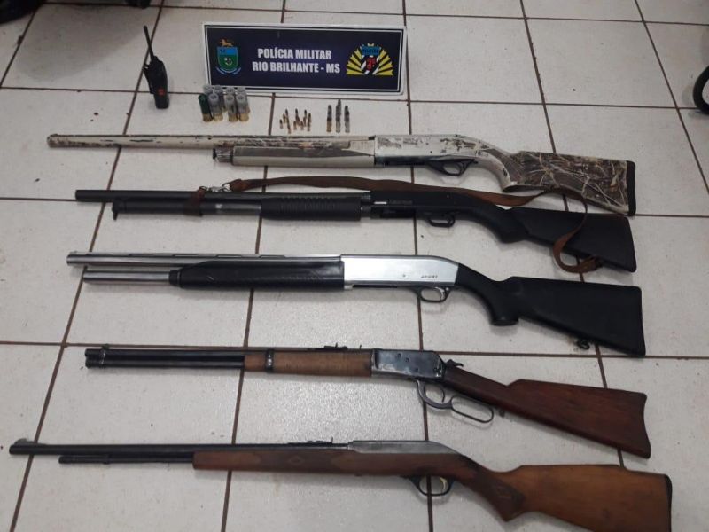Na tarde de Ontem 11/11/2018, uma Guarnição da Policia Militar de Rio Brilhante prendeu dois homens por Posse Irregular de Arma de fogo de uso permitido e de uso restrito, após denúncias de que haviam indivíduos próximo a uma fazenda realizando disparos. Foi encontrada três carabinas calibre 12, uma carabina calibre 22 e uma carabina calibre 357.
