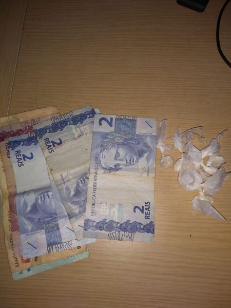 Diante da denúncia a Guarnição deslocou até o local, quando em rondas próximo ao bar a guarnição visualizou duas homens em atitudes suspeitas e de posse das características realizou a abordagem, sendo identificados como R.O.G (34) e V.B.S (33), que em revista minuciosa foi localizado no bolso direito da calça de V.B.S a quantia de 08(oito) papelotes de uma substancia análoga a pasta base de cocaína e no bolso da blusa uma carteira contendo 01 (uma) cédula de R$100,00; 01 (uma) cédula de R$ 50,00 ; 01 (uma) cédula de R$5,00; 04 (quatro) cédulas de R$2,00 totalizando a quantia de R$163,00, já com o R.O.G nada foi encontrado.Mediante materialidade do crime o autor V.B.S foi prenso em flagrante por tráfico de drogas, e encaminhado para Delegacia de Polícia Civil para providencias cabíveis.
