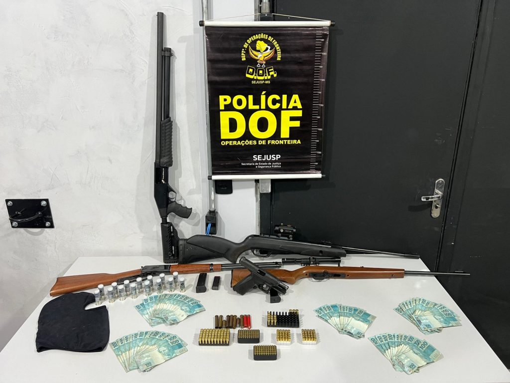 Operação na fronteira com o Paraguai resulta em prisão de dois suspeitos e apreensão de armas, dinheiro e equipamentos