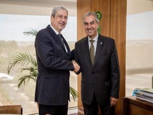 O governador Reinaldo Azambuja (PSDB) se reuniu no fim da tarde desta quarta-feira (23) com o ministro-chefe da Secretaria de Governo da Presidência da República, Antonio Imbassahy, na tentativa de liberar cerca de R$ 54 milhões em recursos para serem aplicados em diversos investimentos em Mato Grosso do Sul.