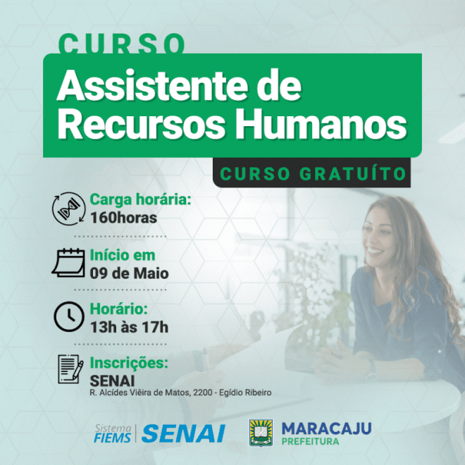 A Prefeitura de Maracaju através da Secretaria de Desenvolvimento Econômico e Meio Ambiente, vem a público informar que o município firmou nova parceria com o SENAI e traz para a comunidade maracajuense, de forma gratuita, o Curso de Assistente de Recursos Humanos.
