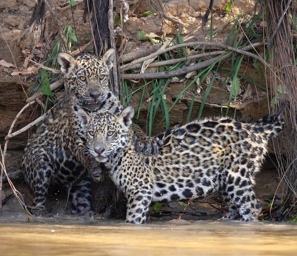 Filhotes de onça aguardam mãe com alimento para eles — Foto: Kim Sullivan – @ksulli16