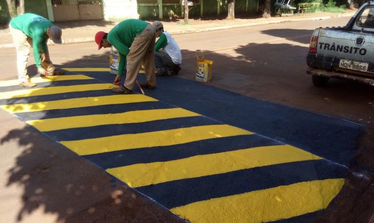 Depois de sinalização e demarcação de estacionamento regulamento para motos, os quebra mola da Rua Joaquim Murtinho também recebe pinturas, facilitando a visibilidade dos motoristas, ciclistas e condutores de motos.
