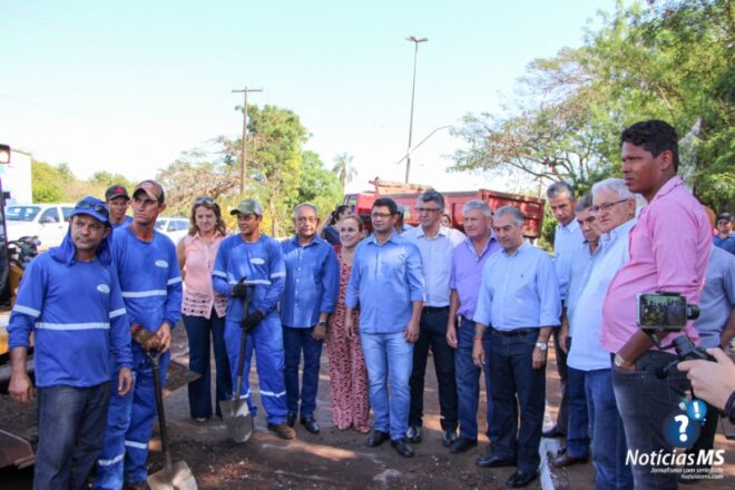 Governador Reinaldo e Prefeito Maurílio acompanham início do recapeamento de três avenidas e visitam obra de Estação de Tratamento de Esgoto em Maracaju