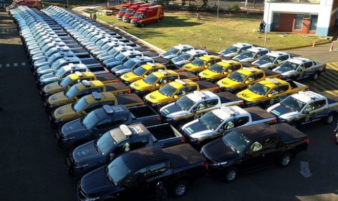 Foram celebrados três contratos com duas montadoras. O maior investimento foi com a General Motors do Brasil Ltda, com aporte de R$ 19.257 milhões para aquisição de 102 viaturas, modelos Trailblazer, adquiridos com recursos do Fundo Estadual de Segurança Pública. As viaturas serão repassadas para as policiais Militar e Civil. O prazo de vigência do contrato vai até 14 de junho de 2021. A novidade é que essas viaturas virão com proteção balística como as da Polícia Rodoviária Federal.