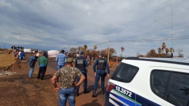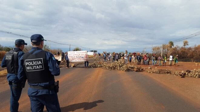Recebemos informações que um grupo indígena bloqueou a saída de Maracaju com faixas e galhos de árvores.