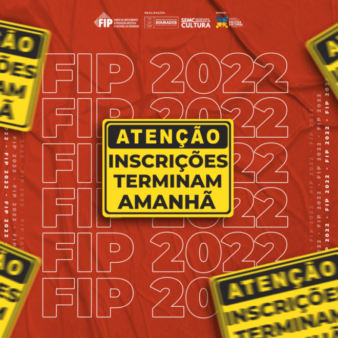 A Prefeitura de Dourados, por meio da Semc (Secretaria Municipal de Cultura) informa que as inscrições para o FIP (Fundo de Investimentos à Produção Artística e Cultural) 2022 terminam nesta quarta-feira (31). É importante ressaltar que os projetos devem ser encaminhados por via postal (Correios), carta com aviso de recebimento (AR) ou por Sedex com aviso de recebimento (AR), conforme está especificado no edital.