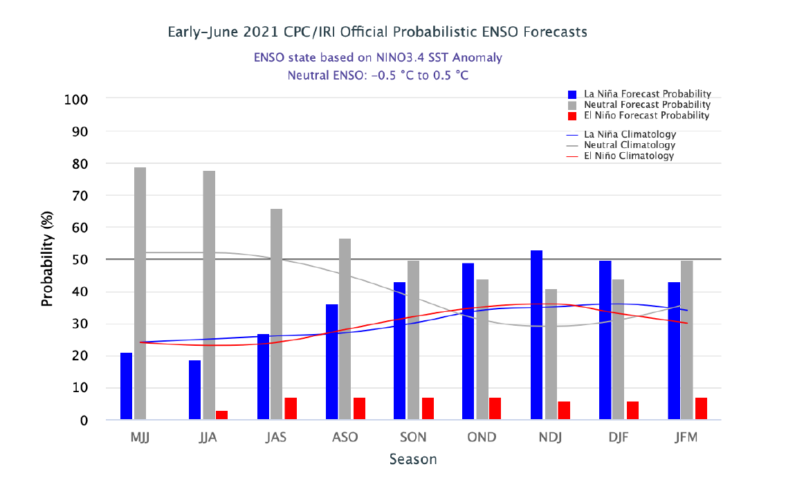 Conforme prognóstico do Instituto Nacional de Meteorologia (Inmet), o inverno de 2021 deverá manter o padrão de neutralidade no Oceano Pacífico Tropical, com uma probabilidade de 75% de manutenção da fase de neutralidade registrada desde abril.