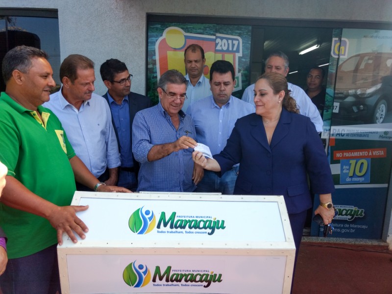 Na manhã desta quarta feira (13) o prefeito Municipal Maurílio Ferreira Azambuja acompanhado de secretários e vereadores realizaram o ultimo sorteio do IPTU 2017, foram sorteadas duas motos O km. Os ganhadores dos prêmios Nereide Ferreira, morador da vila Juquita e Hilário José, morador do Alto Maracaju.