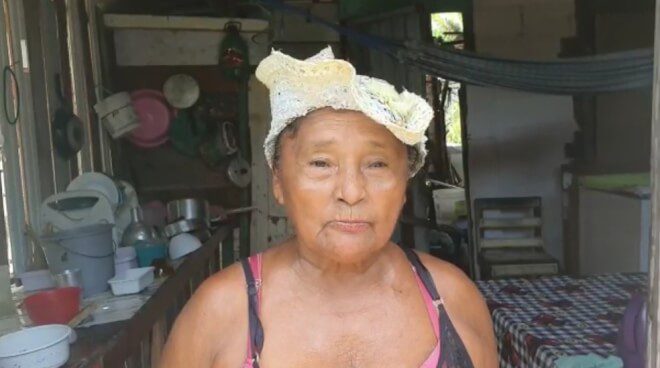“Nós não temos água aqui, nós não temos a luz que nós precisamos. A água que eu preciso eu pego no igarapé. Eu tenho uma boa idade, mas, mesmo assim eu pego [água], mas agora ela não presta nem para a gente beber”, reclamou a moradora.