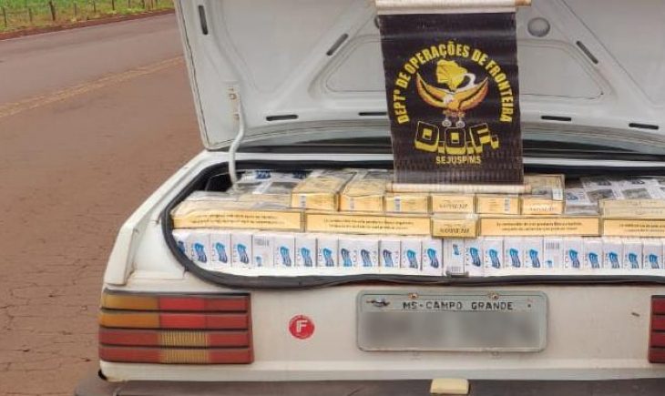 Policiais do Departamento de Operações de Fronteira (DOF) apreenderam na manhã desta segunda-feira, por volta das 9h, um adolescente de 17 anos de idade condutor de um veículo GM Monza branco, com placas de Campo Grande (MS) carregado com 500 pacotes de cigarros, de várias marcas, contrabandeados do Paraguai.