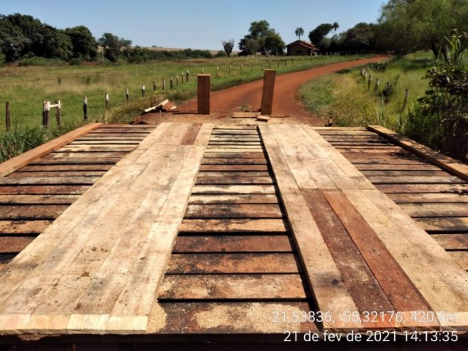 Outra reforma de aproximadamente 45 mil reais é a reforma da ponte da região da Água Fria de Maracaju, esta reforma começou no final de semana e já está quase finalizada, esta ponte é de grande importância agora no escoamento da safra.