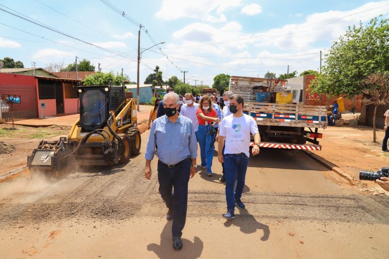 Governador Reinaldo, Prefeito Marcos Calderan e Secretário de Infraestrutura Eduardo Riedel visitaram ruas que serão beneficiadas.