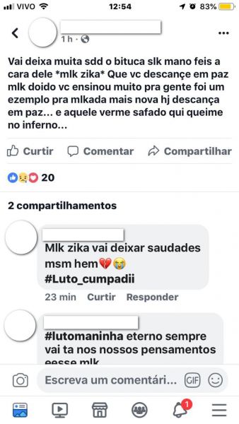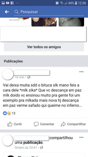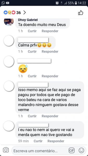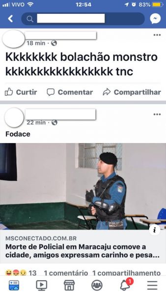 Ontem (10/02) após as divulgações na imprensa falada e escrita, o jovem M.F. (18) usou de uma rede social para expor seu pensamento contra o Policial Militar assassinado.