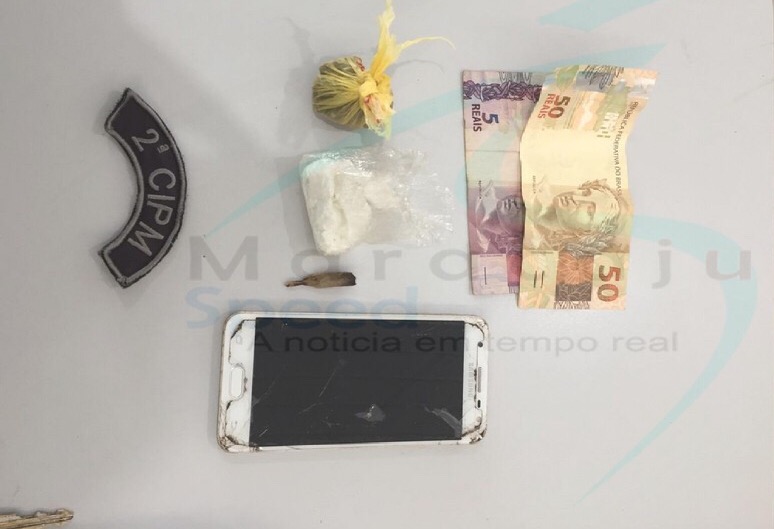 Foram apreendidos uma trouxinha com 10 gramas de substancia análoga a maconha e uma trouxinha contendo 10 gramas de substancia semelhante a cocaína, e foi encontrado no interior do veículo um total de R$55,00 em espécie. Os militares foram informados pelos meliantes que os mesmos venderiam a droga a R$50,00 a grama.