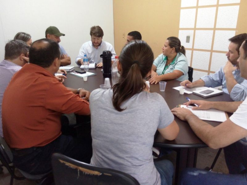 Estiveram reunidos na  manhã desta quita feira (07) na sala de reuniões da Prefeitura Municipal de Maracaju o Secretário  de Governo Frederico Felini, o Diretor do Departamento Agropecuário Eloar Castelaci, o Diretor do Departamento de Vigilância Sanitária Sebastião Estival com os veterinários Waugues Junior, Rodrigo Olegário, também o veterinário da Inspeção do município Tiago Correa , a Técnica em Agropecuária da Agraer Ana Botelho e o Técnico do Sebrae, Emerson Medeiros.
