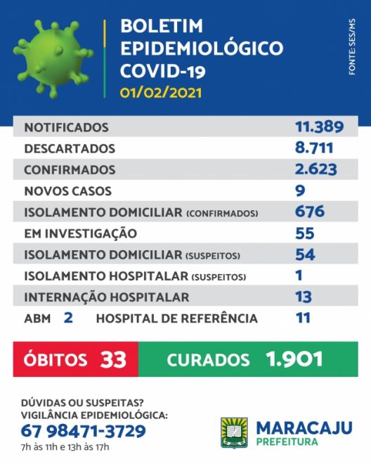 Maracaju registra 09 novos casos de Covid-19 nesta segunda-feira