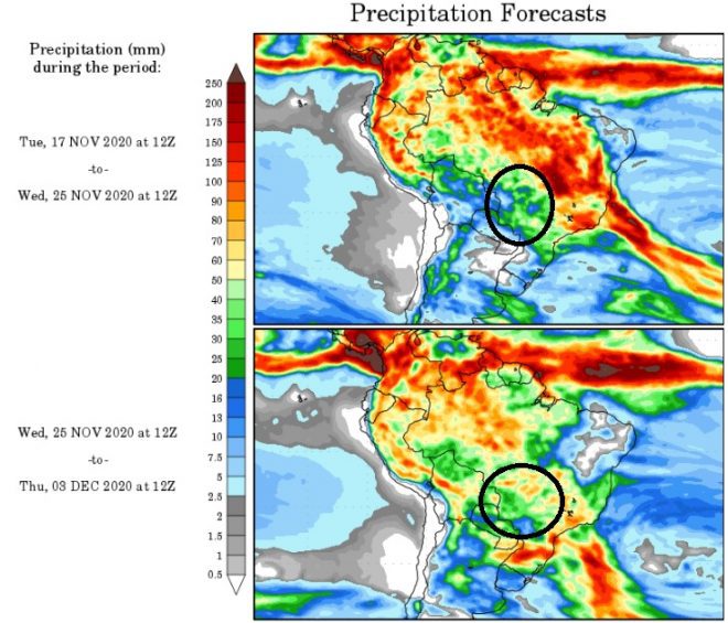 A partir de sexta-feira (20) uma massa de ar seco deve atuar no Estado. Pelo menos até dia 28 não chove e as condições serão de tempo firme, temperaturas em elevação, e queda na umidade relativa do ar. As chuvas são esperadas novamente a partir do dia 29.