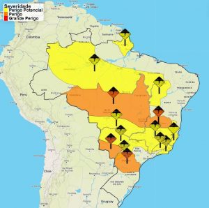 O Cemtec pede atenção a possíveis condições adversas que podem ocorrer como chuvas intensas, ventos fortes e raios, especialmente na parte centro-sul.